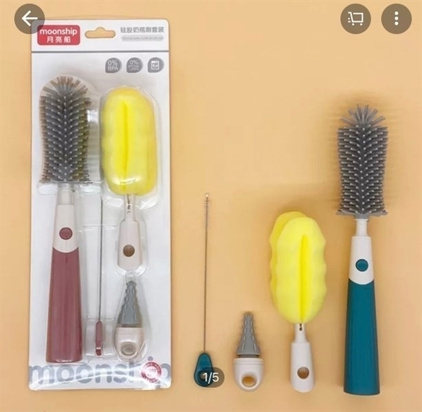 BỘ CỌ RỬA BÌNH SỮA SILICON 4 CHI TIẾT MOONSHIP