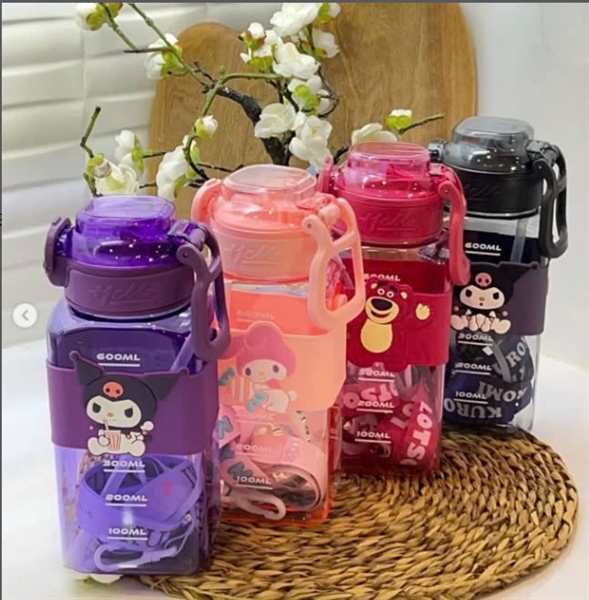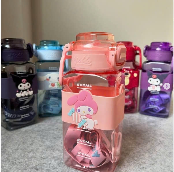 ⭐ ⭐ BÌNH NƯỚC CÓ ĐAI CHỐNG TRƯỢT SANRIO 700ML XINH XẮN CHO BÉ _ Cầm chắc tay ko lo rơi rớt đâu ạ :b