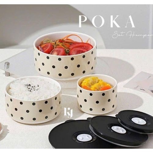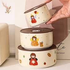 Bộ 03 bát sứ có nắp xịn (họa tiết Chấm bi/ Cô gái)