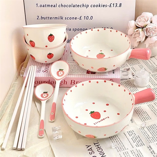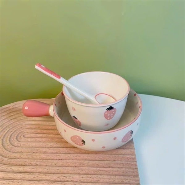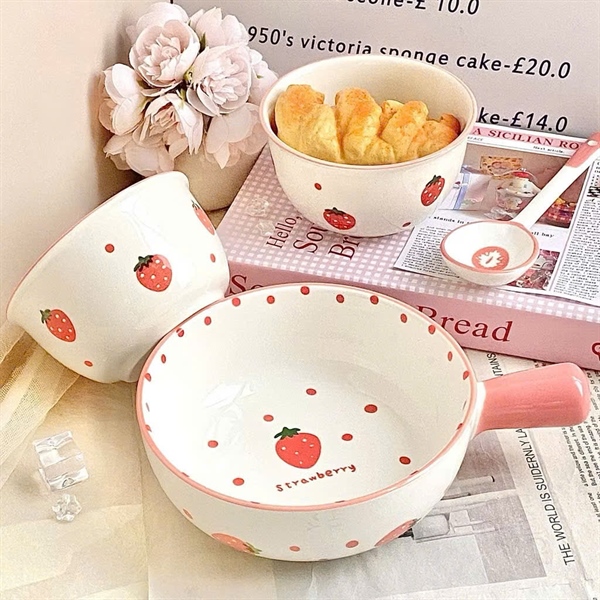 Bộ sứ 03 món chén muỗng quánh sứ Dâu hồng