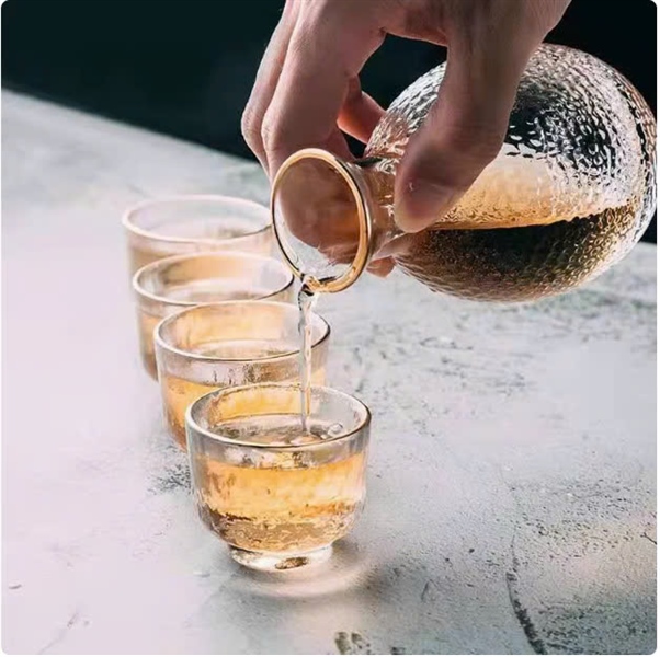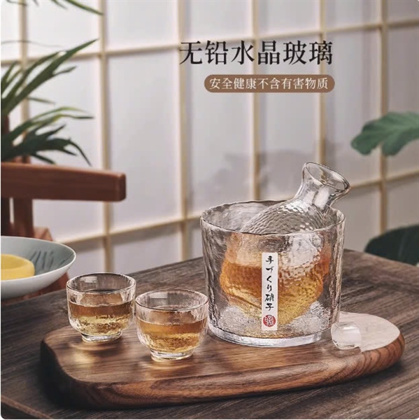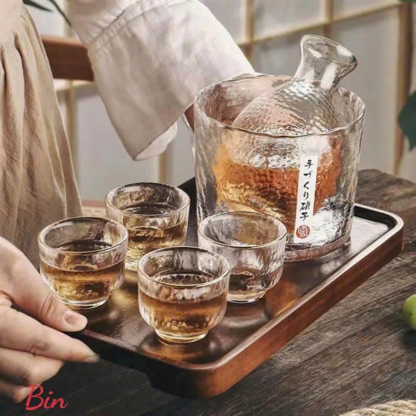 Bộ bình cốc uống rượu phong cách Nhật Bản được làm từ thủy tinh cao cấp với họa tiết đá nước cực sang