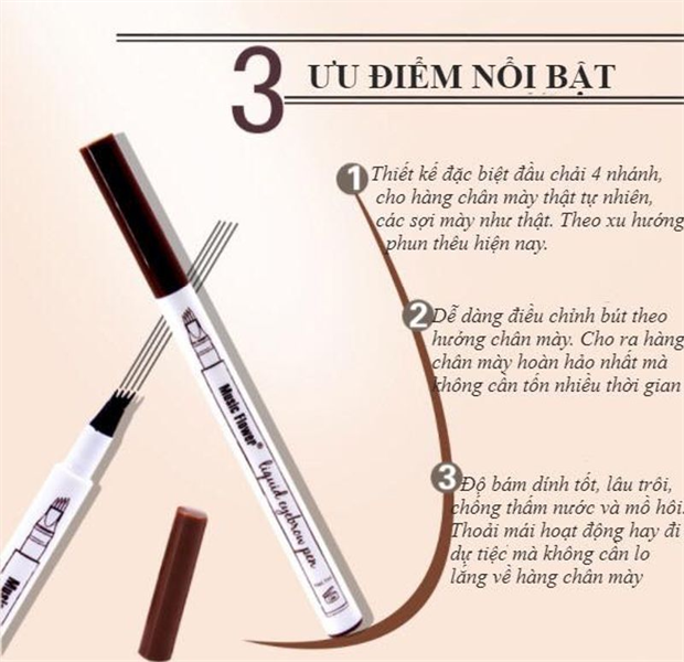 Được thiết kế đặc biệt với đầu chải mày 4 điểm, cho hàng chân mày trông thật tự nhiên, các "sợi" chân mày mảnh gần như hòa lẫn với chân mày thật theo kịp xu hướng "phun thêu" chân mày hiện nay