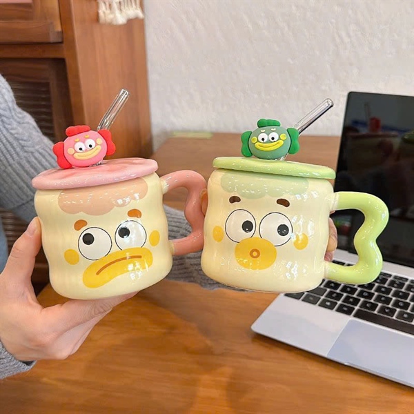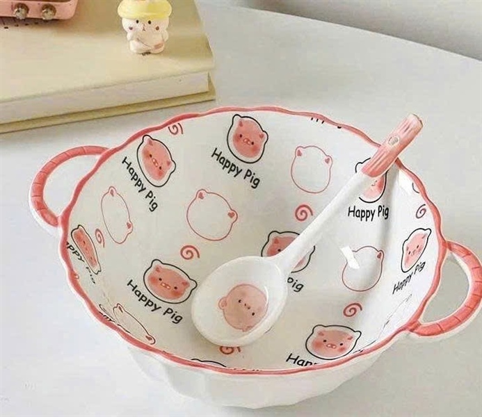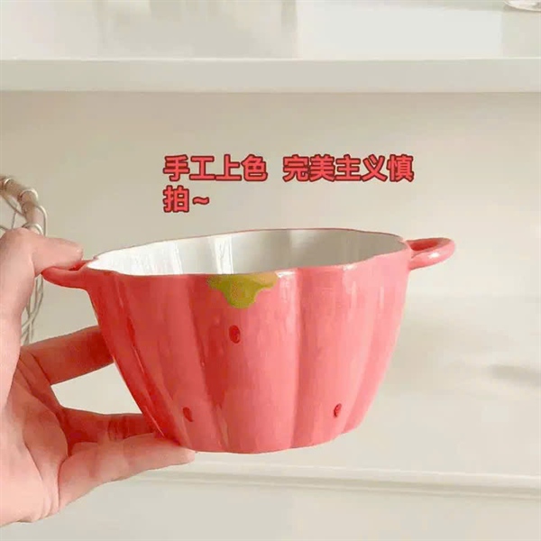 Bát sứ bí ngô 02 tai dâu hồng 13cm