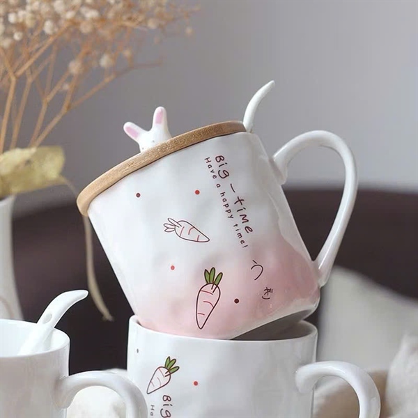 🥤🥤 CỐC SỨ NẮP GỖ MÈO KÈM THÌA 400ML SANG TRỌNG 🥤🥤