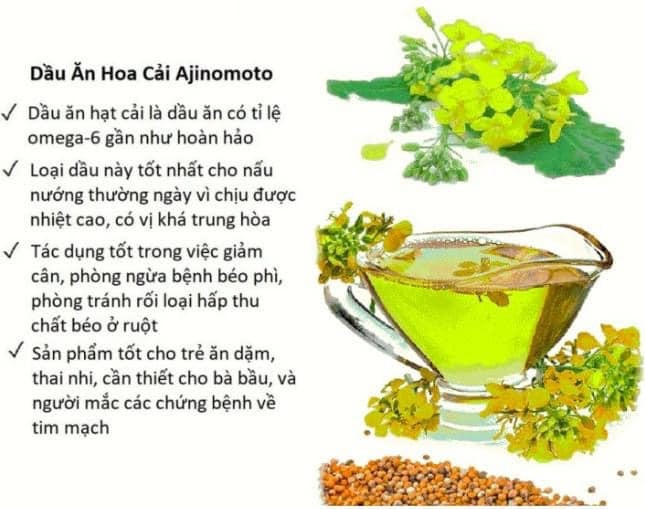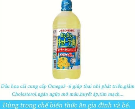 👨🔬👨🔬 Được tinh chế từ 100% dầu hạt cải nguyên chất, dầu hạt cải nguyên chất, dầu ăn hoa cải Ajinomoto là một trong những loại dầu ăn tốt cho sức khỏe. Hàm lượng Omega-3 trong dầu hạt cải rất có ích trong việc giảm nguy cơ các bệnh tim mạch