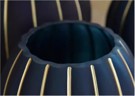 Lọ hoa bí ngô thủy tinh đen sọc vàng