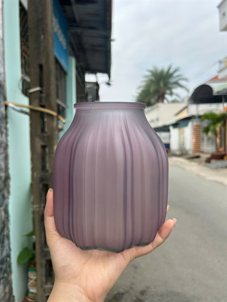 Lọ hoa thủy tinh vân khía dọc nhiều màu 18cm