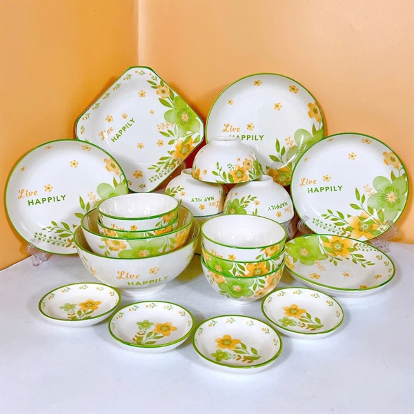 ☘ 🌸 ☘ BỘ BÀN ĂN SỨ HOA MUỐNG XANH SANG ĐẸP _ Ko mua là tiếc lắm ạ 🌸 ☘