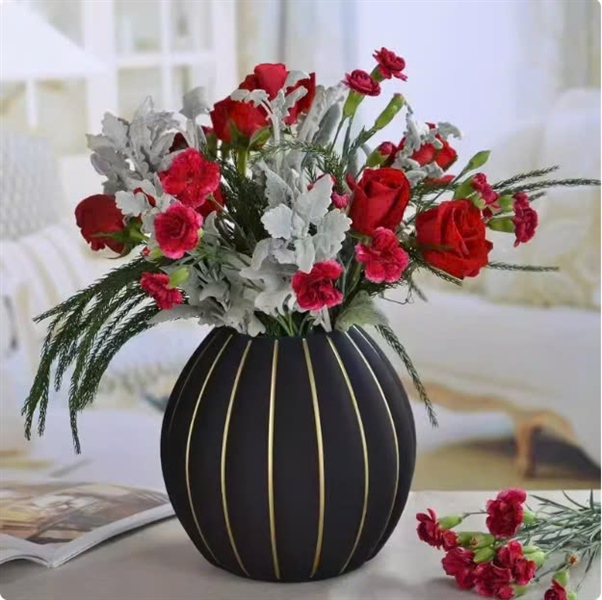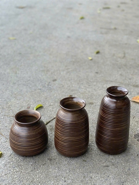 Lọ hoa bí ngô thủy tinh đen sọc vàng