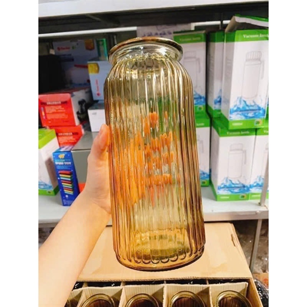 Lọ hoa thủy tinh vân khía dọc nhiều màu 18cm