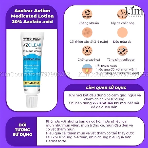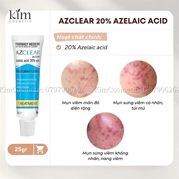 - Azclear giúp mụn rất nhanh giảm sưng, giảm đỏ, mau khô và se còi rất nhanh.