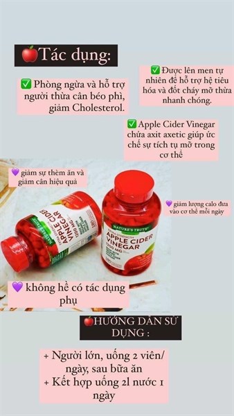 Viên Uống Giấm Táo Hữu Cơ Nature’s Truth Apple Cider Vinergar 1200Mg 180V