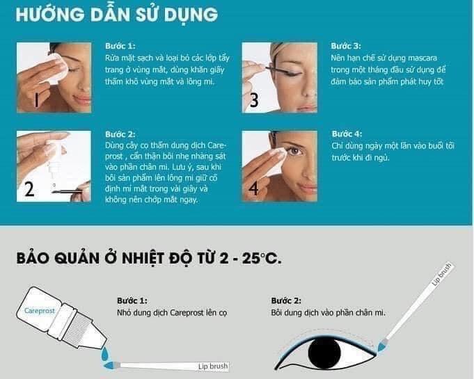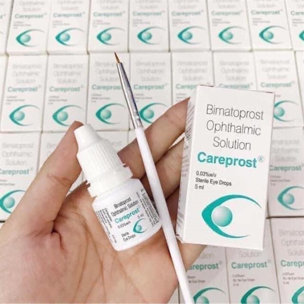 - Dùng cây cọ thấm dung dịch Careprost , cẩn thận bôi nhẹ nhàng sát vào phần chân mi. Lưu ý, sau khi bôi sản phẩm lên lông mi giữ cố định mí mắt trong vài giây và không nên chớp mắt ngay.