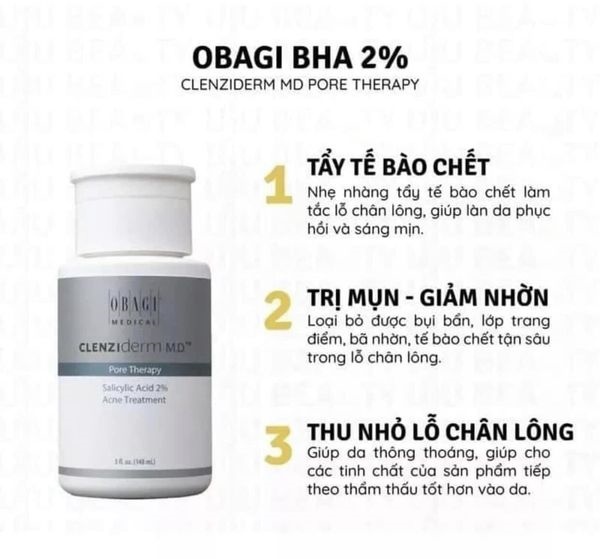Sữa rửa mặt dù tốt đến mấy cũng không thể nào loại bỏ được bụi bẩn, lớp trang điểm, bã nhờn, tế bào chết tận sâu trong lỗ chân lông. Những nhân tố ẩn sâu trong da này có nguy cơ khiến tình trạng mụn nghiêm trọng thêm. Obagi CLENZIderm Pore Therapy là dung dịch đặc trị giúp sạch sâu lỗ chân lông, làm sạch da của bạn. Thành phần tẩy tế bào chết trong Obagi CLENZIderm Pore Therapy nhẹ nhàng tẩy tế bào chết làm tắc lỗ chân lông, ngăn cản quá trình phục hồi của làn da. Sử dụng sản phẩm sau khi rửa mặt giúp da hấp thu hiệu quả bước điều trị mụn tiếp theo. Da sẽ sạch sâu và lỗ chân lông thu nhỏ nhờ Obagi CLENZIderm Pore Therapy.
