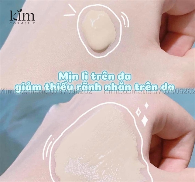 - Chất kem lỏng mịn, độ bám màu cao không dày, không bị vón cục hay gây vết hằn trên da.