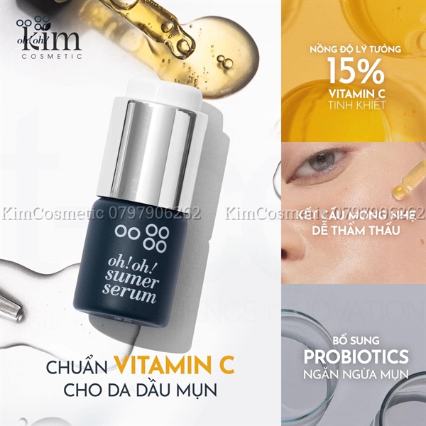 SUMER SERUM - Tinh chất 15% Vitamin C tinh khiết mang đến sức mạnh X3 bất hoạt gốc tự do gây hại, giảm thâm mụn nhanh và tương thích cao với làn da dầu: