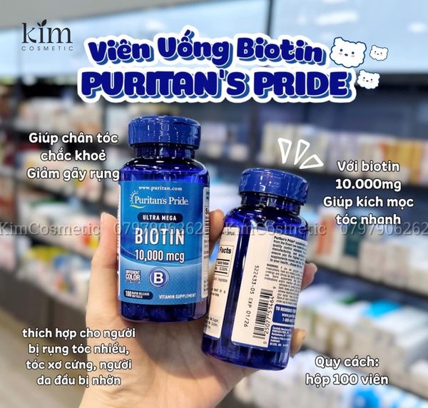 Viên Uống Mọc Tóc Biotin Puritan's Pride 10,000mcg 100v