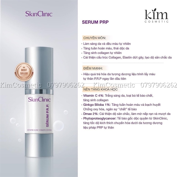 Ngoài ra, Serum PRP còn có các thành phần khác như: vitamin C, Ginkgo Biloba, DMAE sẽ cùng PhytoproteoglycanosR mang đến cho làn da tác dụng sánh ngang liệu trình PRP.