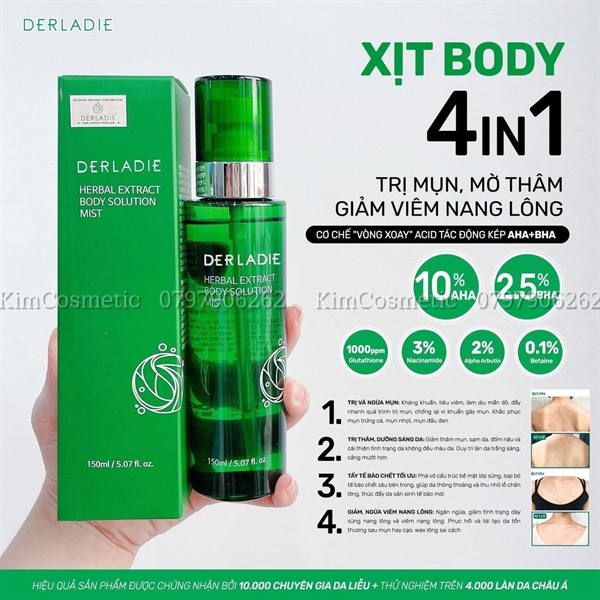 Xịt Mụn Lưng Derladie Herbal Extract Body Solution Mist 150ml