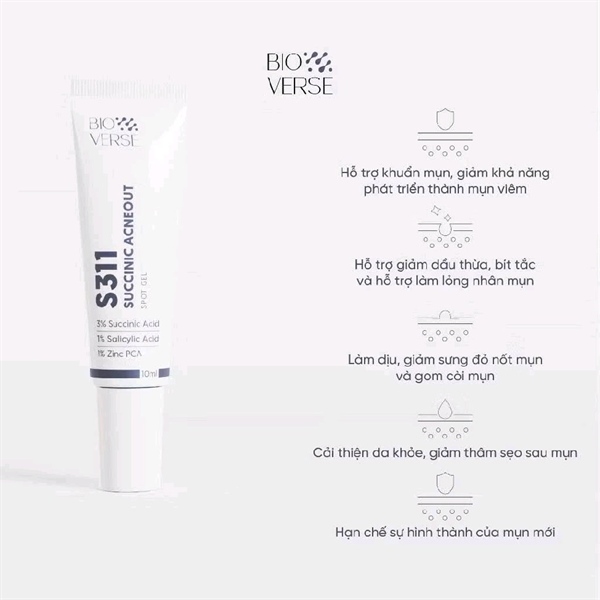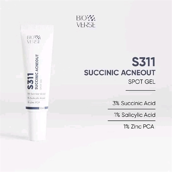 Da thôi buồn rầu vì mụn chỉ trong 1 chấm đủ 3 tác động "xóa sổ" mụn từ Giải pháp Gel chấm mụn S311 Succinic Acneout, check ngay cùng Bioverse nha!