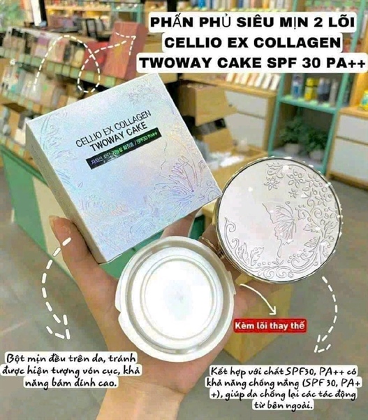 💕💕 Phấn phủ Cellio mẫu mới với 2 lõi phấn với tính năng kiềm dầu, chống bóng dầu.