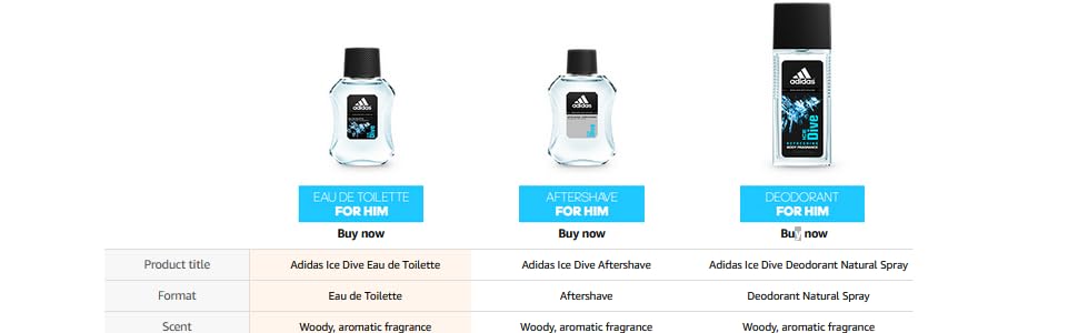 Adidas Ice Dive EDT là một loại nước hoa dành cho nam giới, được giới thiệu bởi thương hiệu Adidas vào năm 2001.