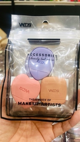 Set 3 Bông Cushion Nhỏ Vacosi (hồng, kem, tím) BP54-02