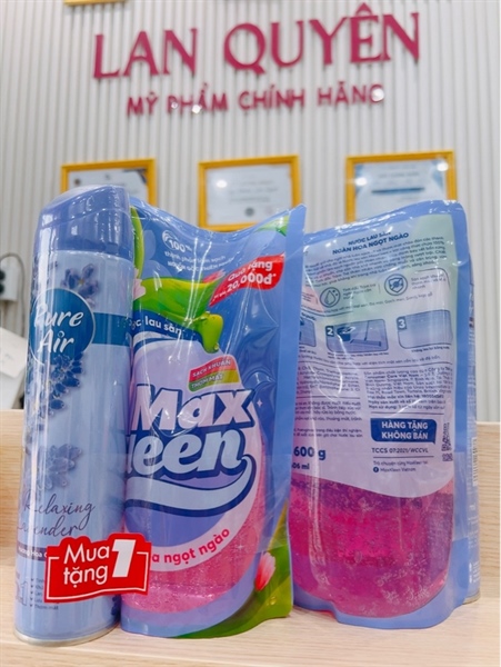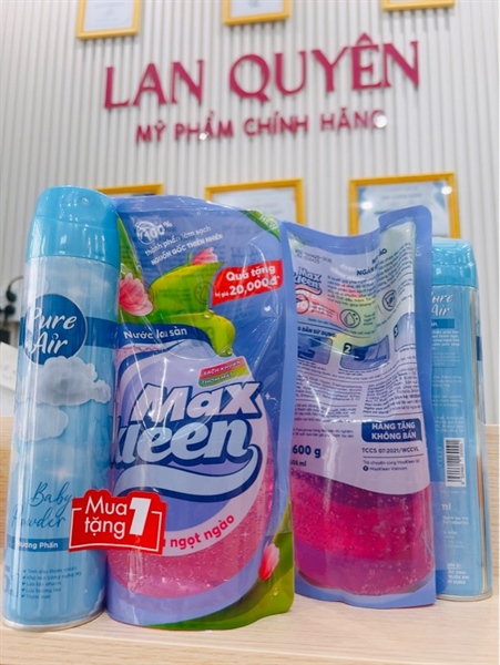 Xịt Thơm Phòng Pure Air Hương Phấn 280ml + Phẩm Nước Lau Sàn Max Kleen 600g