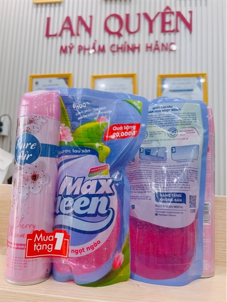 Xịt Thơm Phòng Pure Air Hương Hoa Anh Đào 280ml + Phẩm Nước Lau Sàn Max Kleen 600g