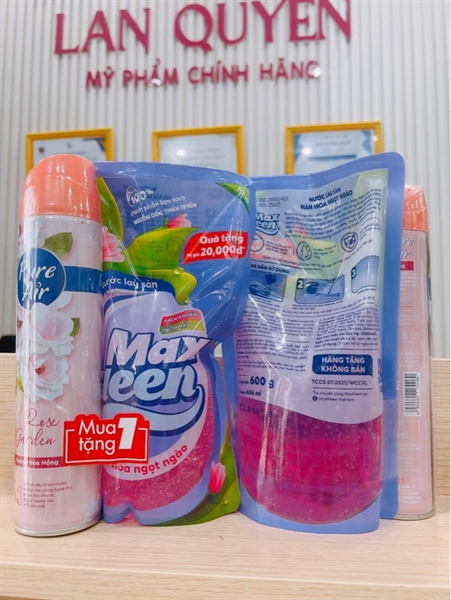 Xịt Thơm Phòng Pure Air Hương Hoa Hồng 280ml + Phẩm Nước Lau Sàn Max Kleen 600g