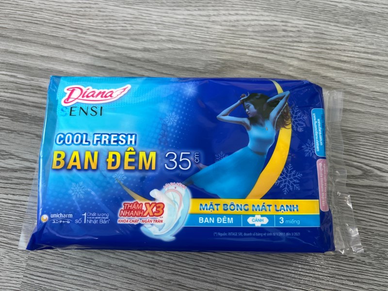 Băng Vệ Sinh Diana - SENSI COOL FRESH BAN ĐÊM 35cm (Cánh) 3 Miếng