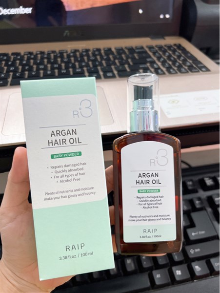 Dưỡng Tóc RAIP R3 ARGAN HAIR OIL - BABY POWDER - Mùi Phấn (Xanh Ngọc) 100ml