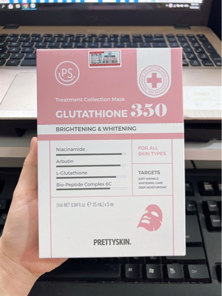 Mặt Nạ PRETTYSKIN. - GLUTATHIONE 350 - Chống Lão Hoá, Sáng Da (Hồng) 25ml (5 Miếng / Hộp)