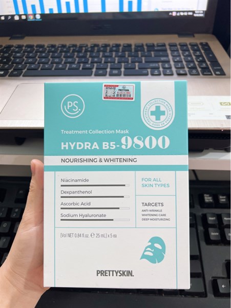 Mặt Nạ PRETTYSKIN. - HYDRA B5 - 9800 - Cấp Ẩm (Xanh Ngọc) 25ml (5 Miếng / Hộp)