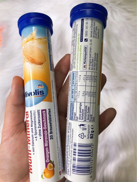 Viên Sủi Đức Bổ Sung Đá Khoáng (Vị Cam Và Chanh Dây)Nắp Xanh Dương 82g
