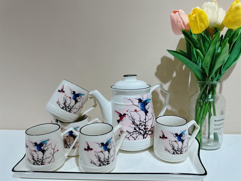 - BỘ ẤM TRÀ SỨ CHIM ĐÀO