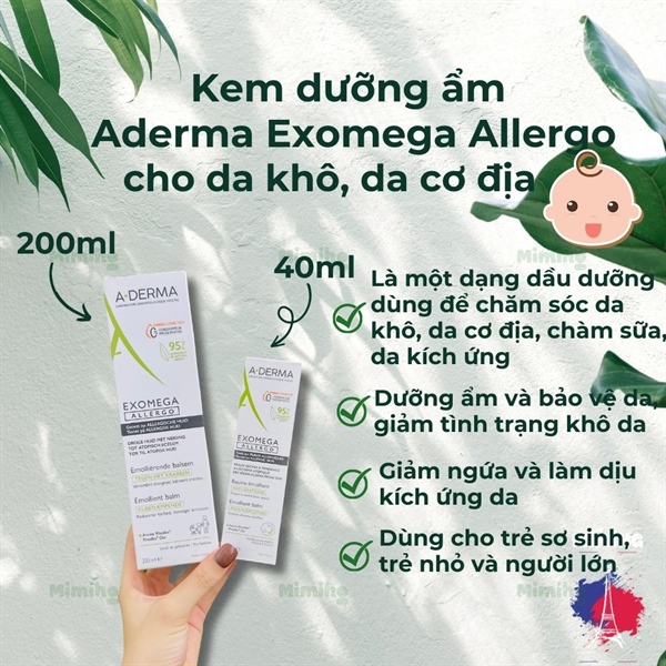 - Kem dưỡng ẩm dành cho da khô, viêm da cơ địa và dị ứng A-Derma Exomega Allergo Emollient Balm dành cho da khô hoặc rất khô, viêm da cơ địa, da nhạy cảm, dễ kích ứng.