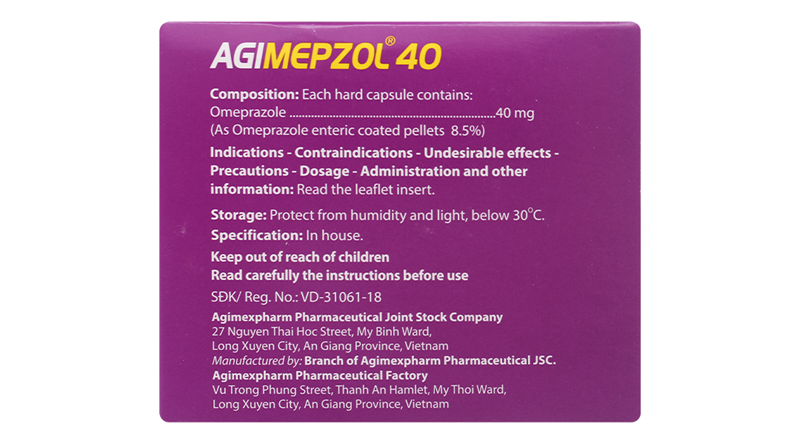 AGIMEPZOL 40mg (Omeprazole) | Thuốc Giảm Acid Dịch Vị Dạ Dày | (Dược Agimexpharm) - Viên