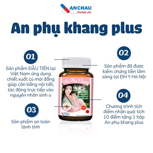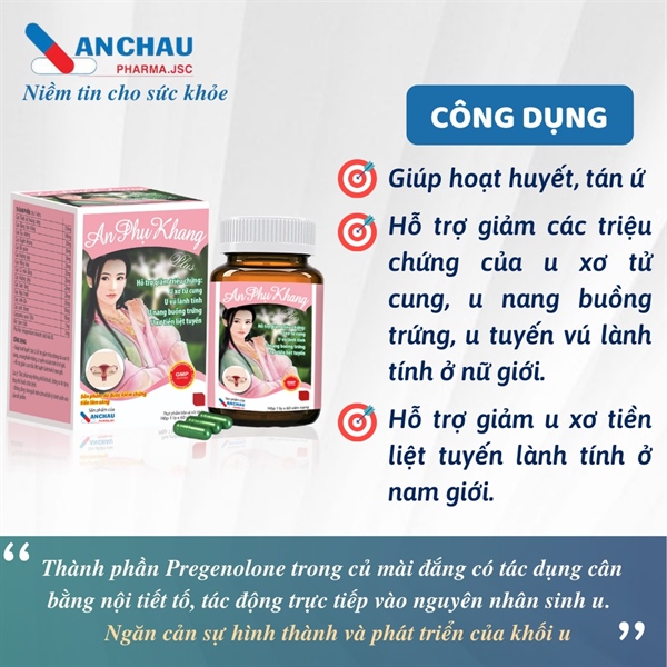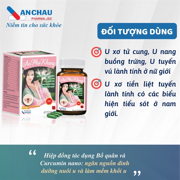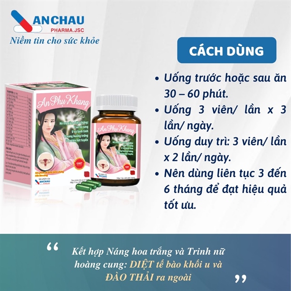 AN PHỤ KHANG PLUS | Hỗ Trợ Giảm U Xơ Tử Cung, U Nang Buồng Trứng, U Vú | (Dược An Châu) - Hộp 60 viên