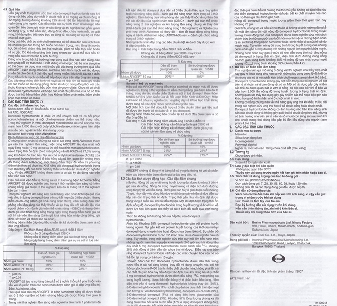 Trong quá trình sử dụng thuốc Aricept Evess, bệnh nhân có thể gặp một số tác dụng phụ (ADR) như: