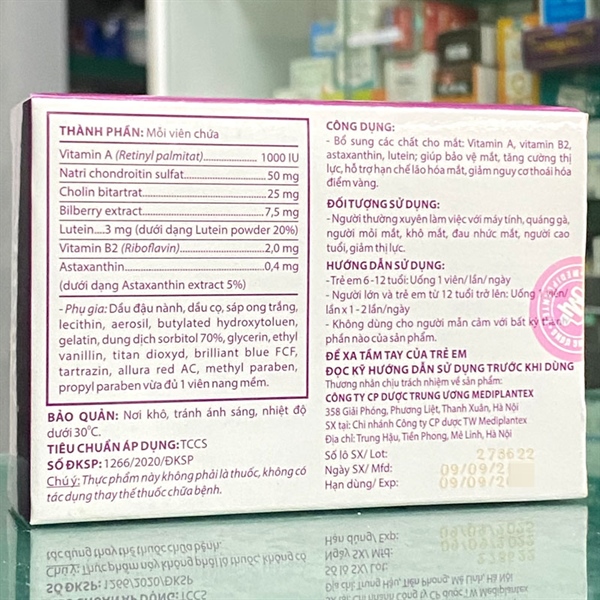 Lutein: 3 mg (dưới dạng Lutein powder 20%)