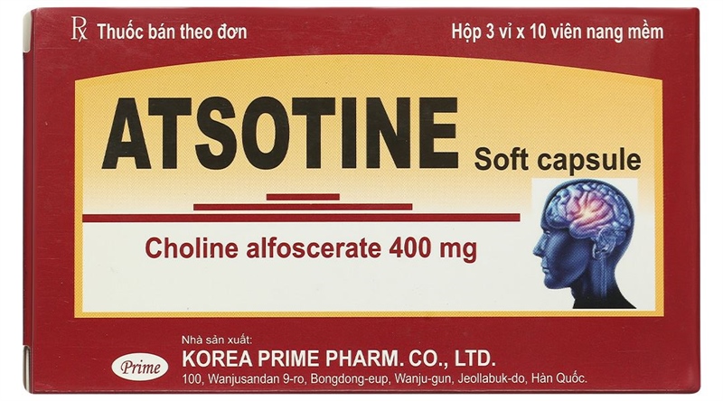 Thuốc Atsotine 400mg là một sản phẩm của Korea Prime Pharm Co., Ltd, có chứa hoạt chất chính là Cholin alfoscerat, giúp điều trị cơn đột quỵ não cấp và hỗ trợ phục hồi chức năng cho bệnh nhân sau đột quỵ. Ngoài ra, thuốc Atsotine 400 cũng được sử dụng nhằm điều trị các triệu chứng của tình trạng chấn thương sọ não, giúp người bệnh phục hồi sức khoẻ sau khi gặp chấn thương và phẫu thuật thần kinh. Bên cạnh đó, bác sĩ cũng có thể chỉ định thuốc Atsotine cho những đối tượng cần cải thiện trí nhớ và tăng độ tỉnh táo hoạt động của não bộ.