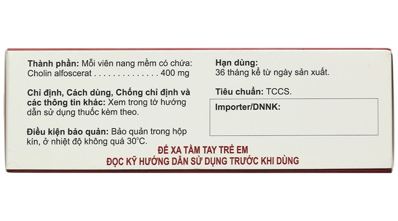 - Thải trừ: Cholin alfoscerat được thải trừ hầu hết qua đường nước tiểu dưới dạng chuyển hoá, ước tính chỉ khoảng 4% đào thải ra bên ngoài dưới dạng không đổi.