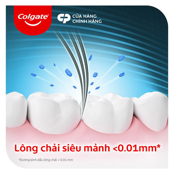 Bàn chải Colgate lông chải siêu mảnh < 0.01 mm nhẹ nhàng chải sạch vụn thức ăn: