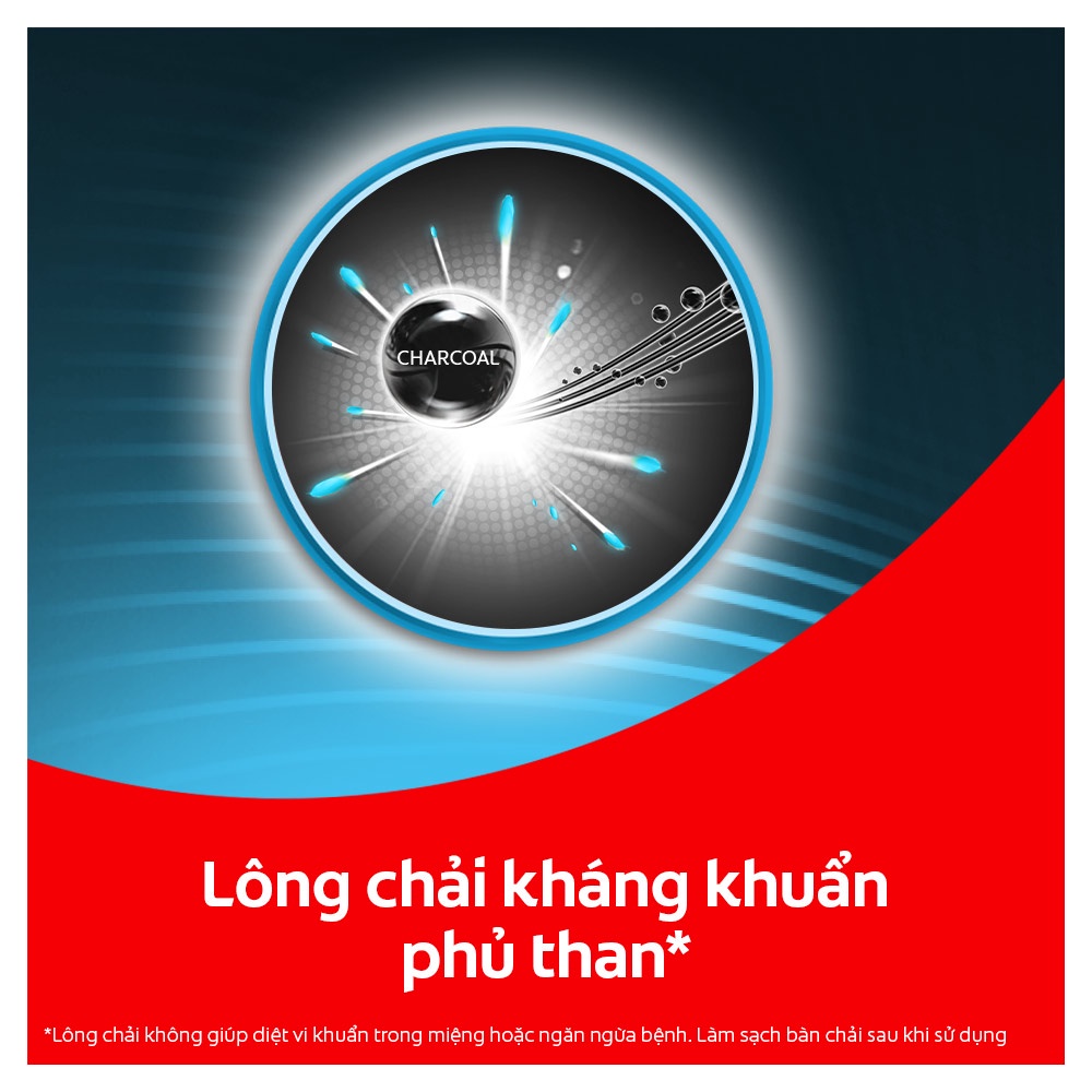 + Quanh đường viền nướu Lông chải phủ hạt micro Charcoal giúp chải sạch sâu và nhẹ nhàng, loại bỏ vi khuẩn hiệu quả hơn so với lông chải thông thường Cổ bàn chải linh hoạt giúp chải sạch tận răng trong cùng khó chải* so với lông chải phẳng thông thường