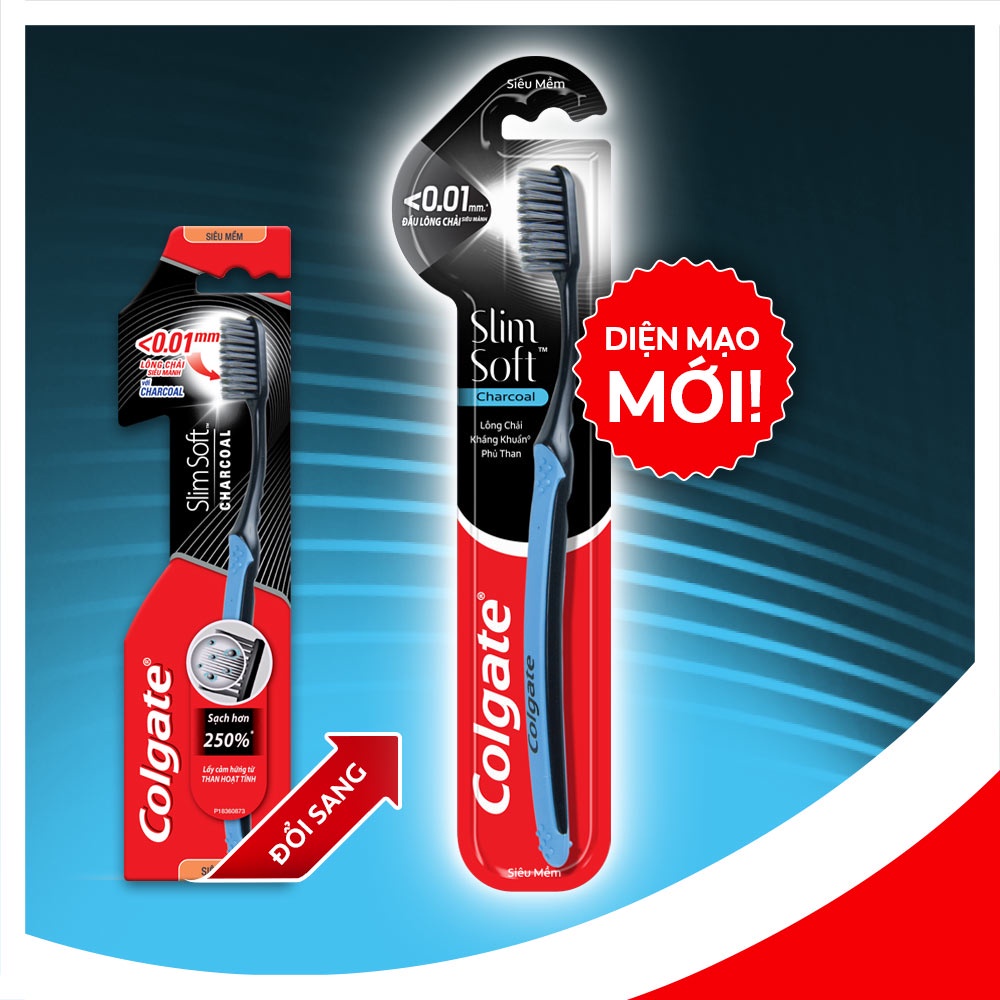 Bàn chải đánh răng Colgate than hoạt tính kháng khuẩn SlimSoft Charcoal mềm mảnh giúp chải sạch hơn 250%*