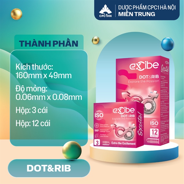 - Tên sản phẩm: Bao cao su Excibe Dot & Rib