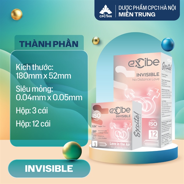 Bao Cao Su Cao Cấp EXCIBE INVISIBLE - N.Khẩu Thái Lan | Trơn - Siêu Mỏng - Có Như Không | (Dược CPC1HN) - Hộp