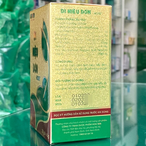 CỐM DI NIỆU ĐƠN HOSE | Hỗ Trợ Cho Người Tiểu Đêm, Đái Dầm, Thận Yếu, Mồ Hôi Trộm | (Dược Hoa Sen) - Hộp 20 gói