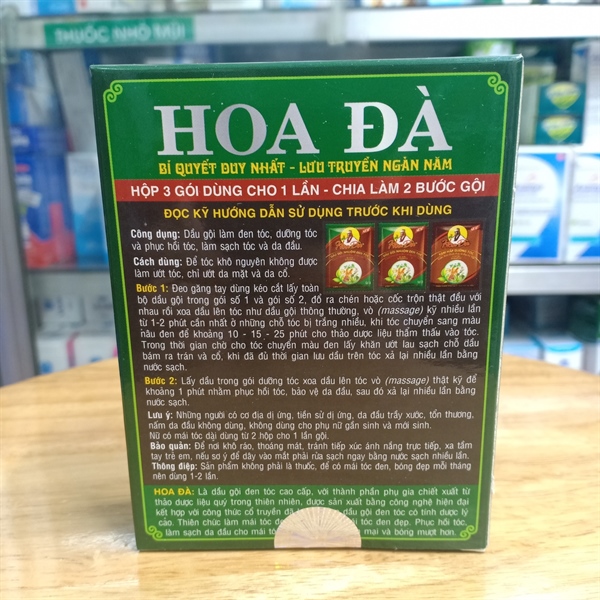 Sản phẩm Dầu gội nhuộm đen tóc thảo dược Hoa Đà không phải là thuốc và không có tác dụng thay thế thuốc chữa bệnh.